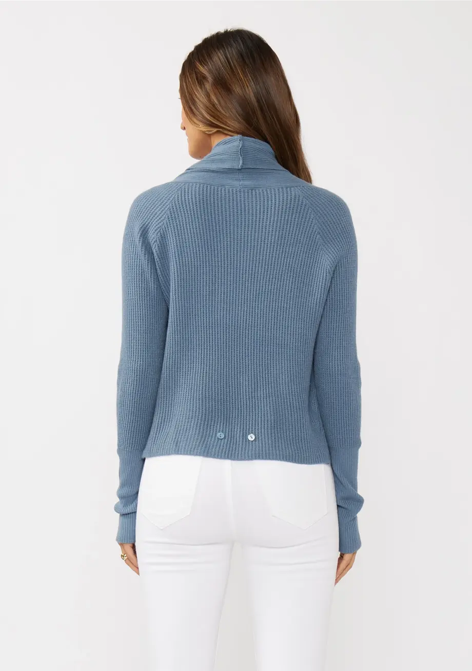 Designed for maximum styling potential, this piece features a functional tie-front closure, allowing you to wear it three chic ways: open and flowy, tied at the waist for a feminine silhouette, or wrapped and secured with two discreet exterior buttons for a polished finish. The dreamy Heather Ocean hue evokes calm coastal mornings—perfect for brunch dates, casual office days, or sunset strolls.