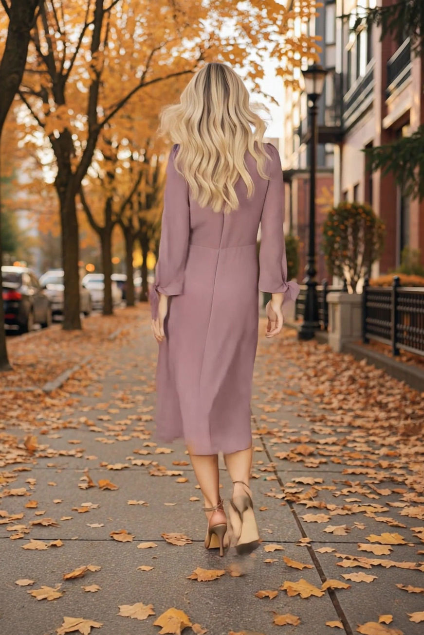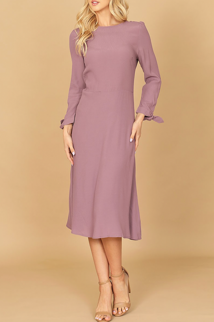 Effortlessly chic, the Lavender Luxe Midi in lilac features elegant cuff-tie long sleeves and a flattering midi silhouette. Crafted from 100% soft and breathable rayon, it’s perfect for everything from brunch to evening soirées